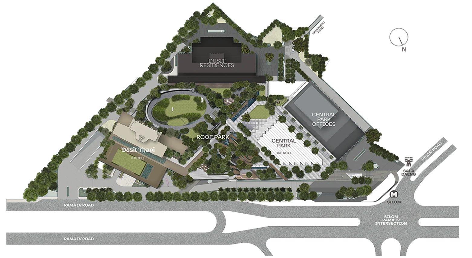 แลนด์มาร์กใหม่ใจกลางเมือง Dusit Central Park ผสมผสานชีวิต การค้า และธรรมชาติ สร้างสกายไลน์ใหม่ ไฮไลต์สำคัญ Roof Park พื้นที่ 7 ไร่ เป็นพื้นที่สีเขียวกลางอากาศใหญ่ที่สุดในไทย เหมือนป่าลอยฟ้า ให้ชาวเมืองได้พักผ่อนและสังสรรค์ โครงการออกแบบตามหลักฮวงจุ้ย ผสมผสานอาคารกับพลังธรรมชาติ 3 อาคารสูงและพื้นที่ค้าปลีกล้อมรอบพื้นที่สีเขียว ให้ความเจริญและความสงบมาบรรจบกัน ที่นี่ไม่เพียงยกระดับทัศนียภาพ แต่ยังเป็นไลฟ์สไตล์แห่งอนาคต