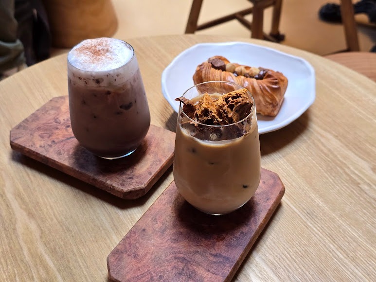 กลางวัน ที่นี่คือคาเฟ่เงียบสงบ กลิ่นกาแฟดริปไหลไปพร้อมกับผิวสัมผัสของอาคาร