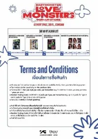 พิเศษสุด! เมื่อซื้อสินค้า BABYMONSTER ใน “LOVE MONSTERS POP-UP STORE” ครบทุก 2,000 บาท รับทันที โฟโต้การ์ดลิมิเต็ดเฉพาะ POP-UP STORE ไทย แบบสุ่ม 1 ใบ (จำนวนจำกัด หมดแล้วหมดเลย)