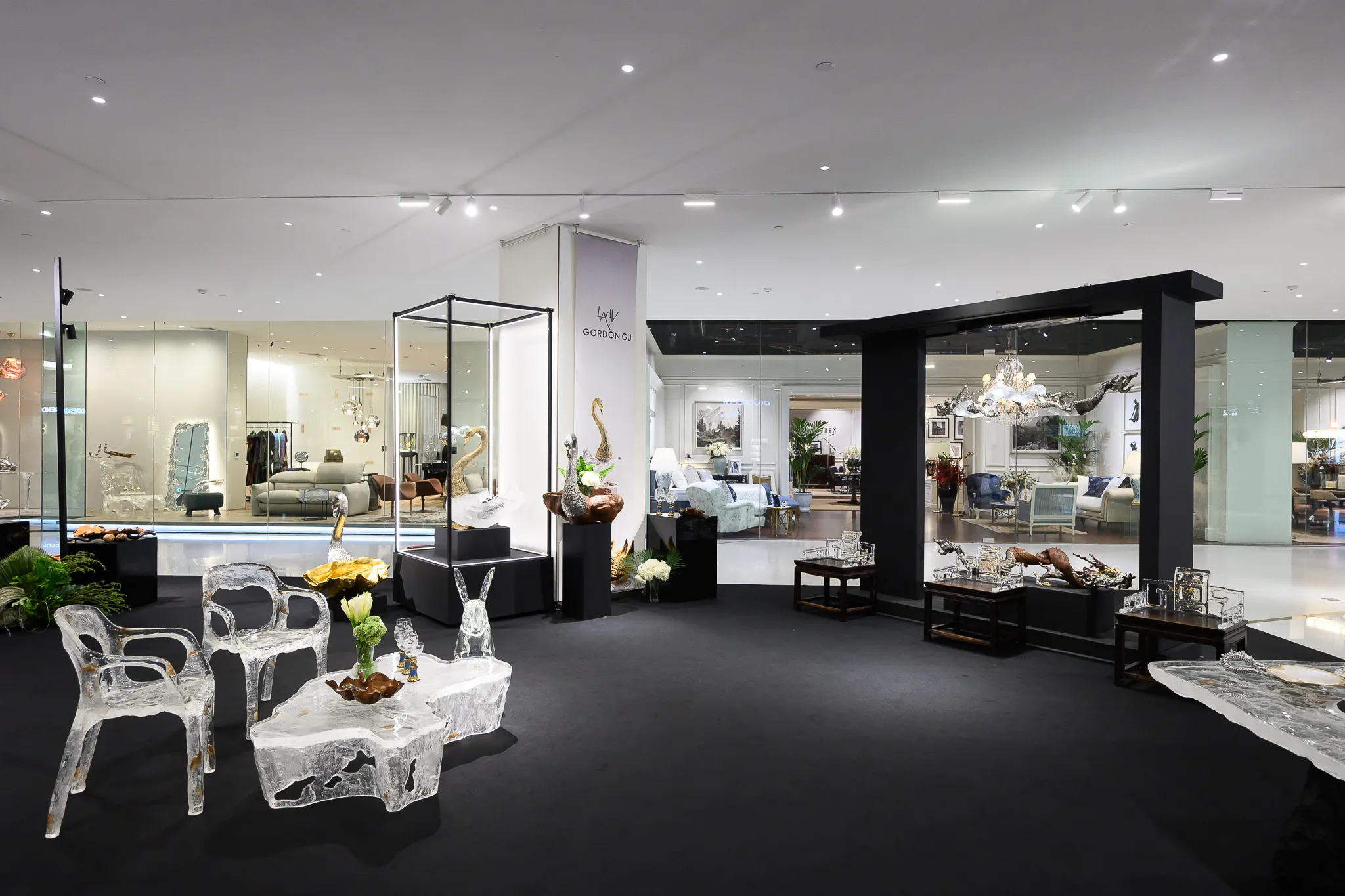 ขณะที่ GORDON GU โดดเด่นด้วยเฟอร์นิเจอร์และงานตกแต่งบ้านที่ใช้ ‘Glacier Crystal’ เทคโนโลยีเอกสิทธิ์ที่ได้รับการจดสิทธิบัตร เพื่อสร้างเรซินที่มีพื้นผิวใส เปล่งประกาย และเงางามเป็นพิเศษ ดุจแก้วคริสตัล มอบประสบการณ์การอยู่อาศัยที่หลอมรวมศิลปะเข้ากับชีวิตประจำวันได้อย่างกลมกลืนเป็นหนึ่งเดียว