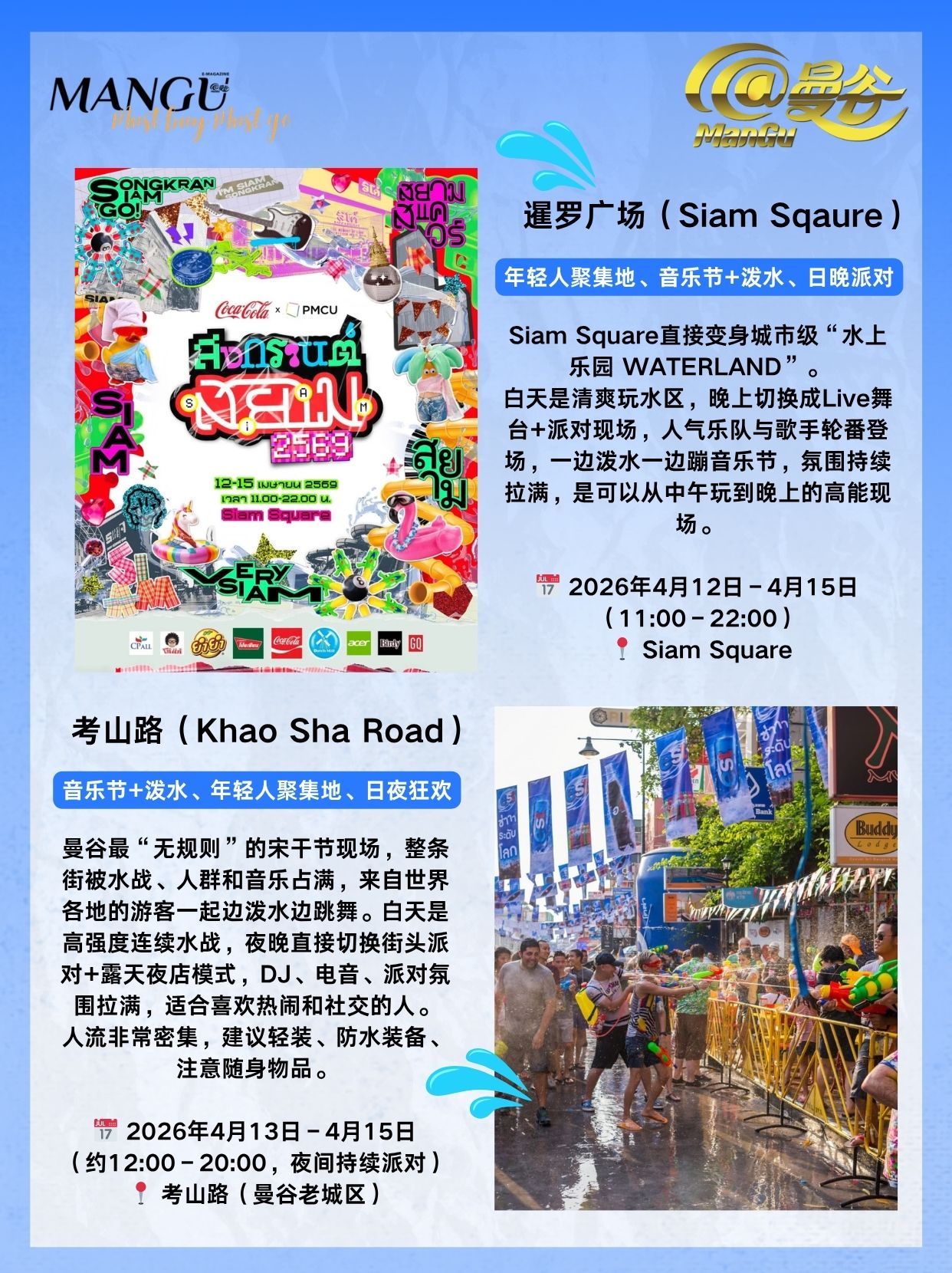 เดินไม่กี่ก้าวก็โดนสาด คนแน่นมาก บรรยากาศคือสุด