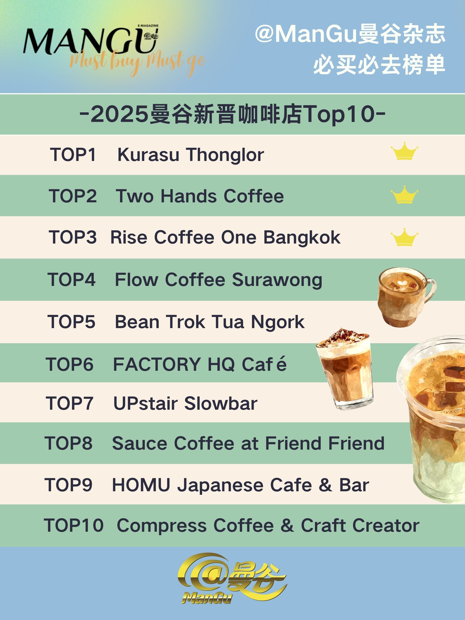 2025年,曼谷的咖啡地图再次更新,不少新开的咖啡厅迅速成为城市里最“有氛围”的角落,吸引着大家前去打卡。为了更客观、公正地呈现今年的咖啡新势力,同时避免“网红=好店”这样的刻板印象,本次《@ManGu曼谷》杂志推出了“2025曼谷新晋咖啡店TOP10“榜单,不是简单看热度,而是从多个角度去衡量这些新店是否真的值得一去。