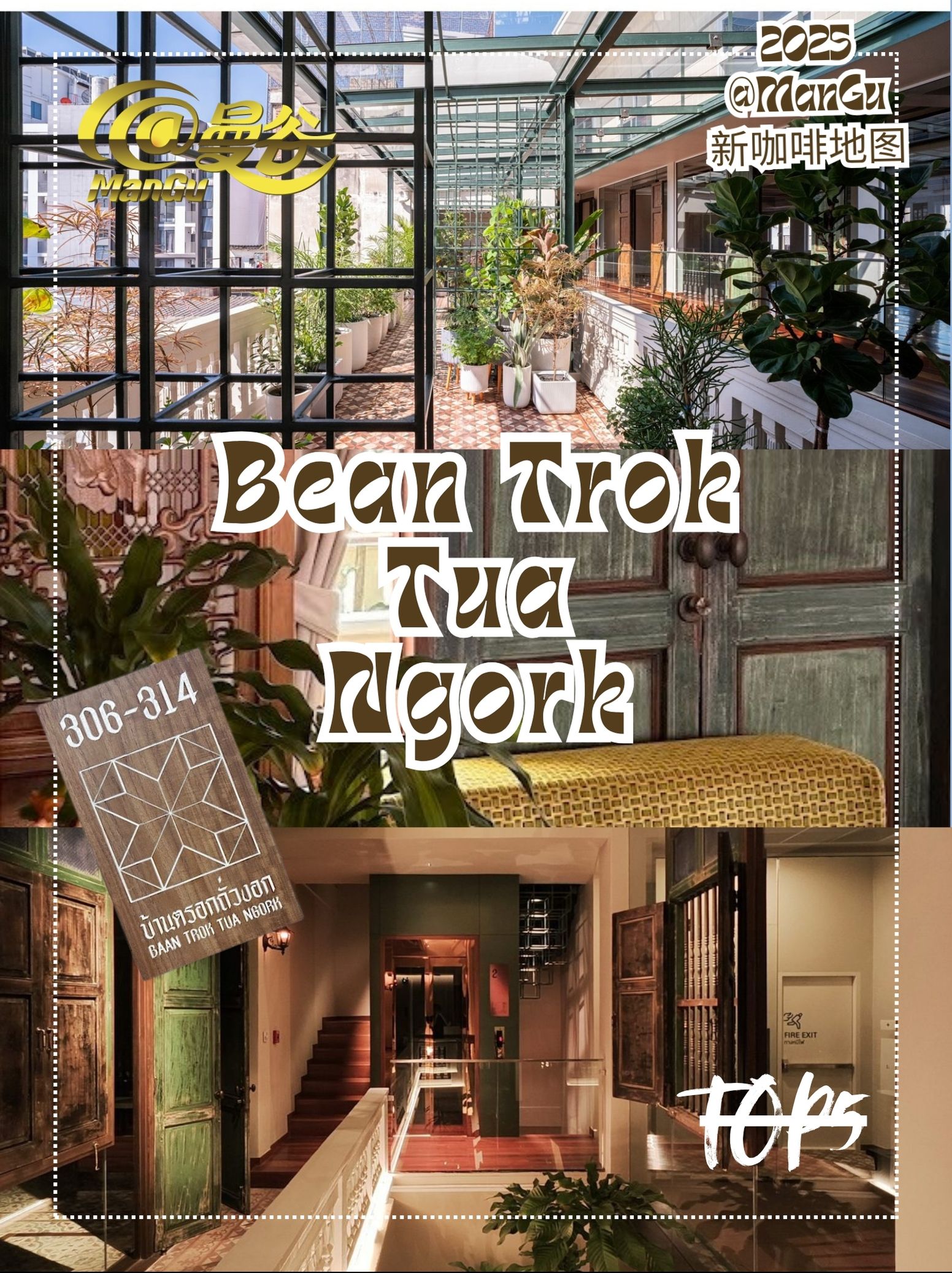 Bean Trok Tua Ngork是由一座百年老宅改造而成,完美融合了古老与现代的氛围。红砖墙、木梁天花与手作咖啡的香气,构成了一幅属于曼谷的独特风景。无论是来探索本地文化,还是想找一处复古拍照点,这里都非常值得一访。
