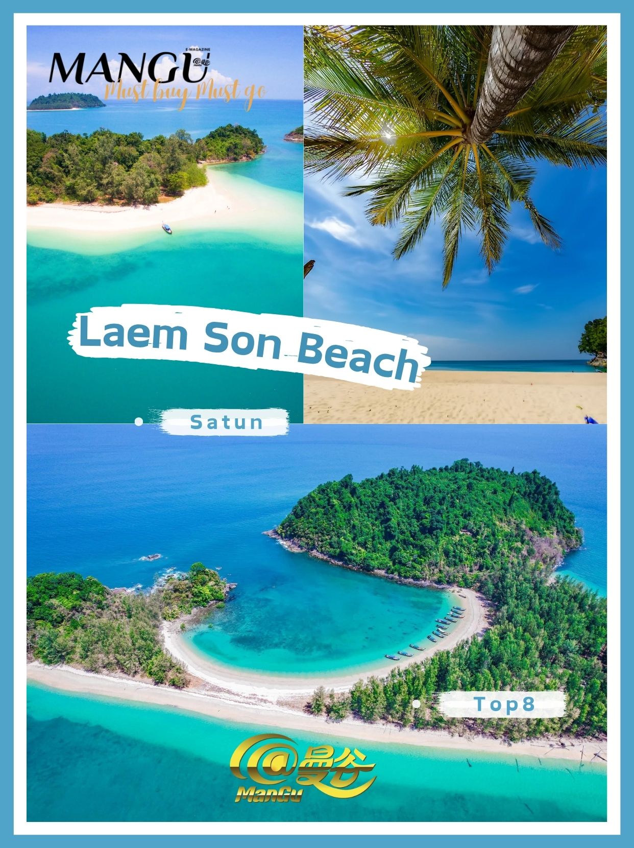 但对旅行来说,仅仅“环境好”是不够的。真正影响体验的,往往是更直观的东西:比如第一眼的景观冲击、海水的质感、整体氛围,以及你到达这个地方的难度和过程。所以这次《@Mangu曼谷》杂志这份榜单没有直接照搬“海滩环境评估”的评选结果,而是基于其标准,再结合这几个更实际的维度重新筛了一遍: