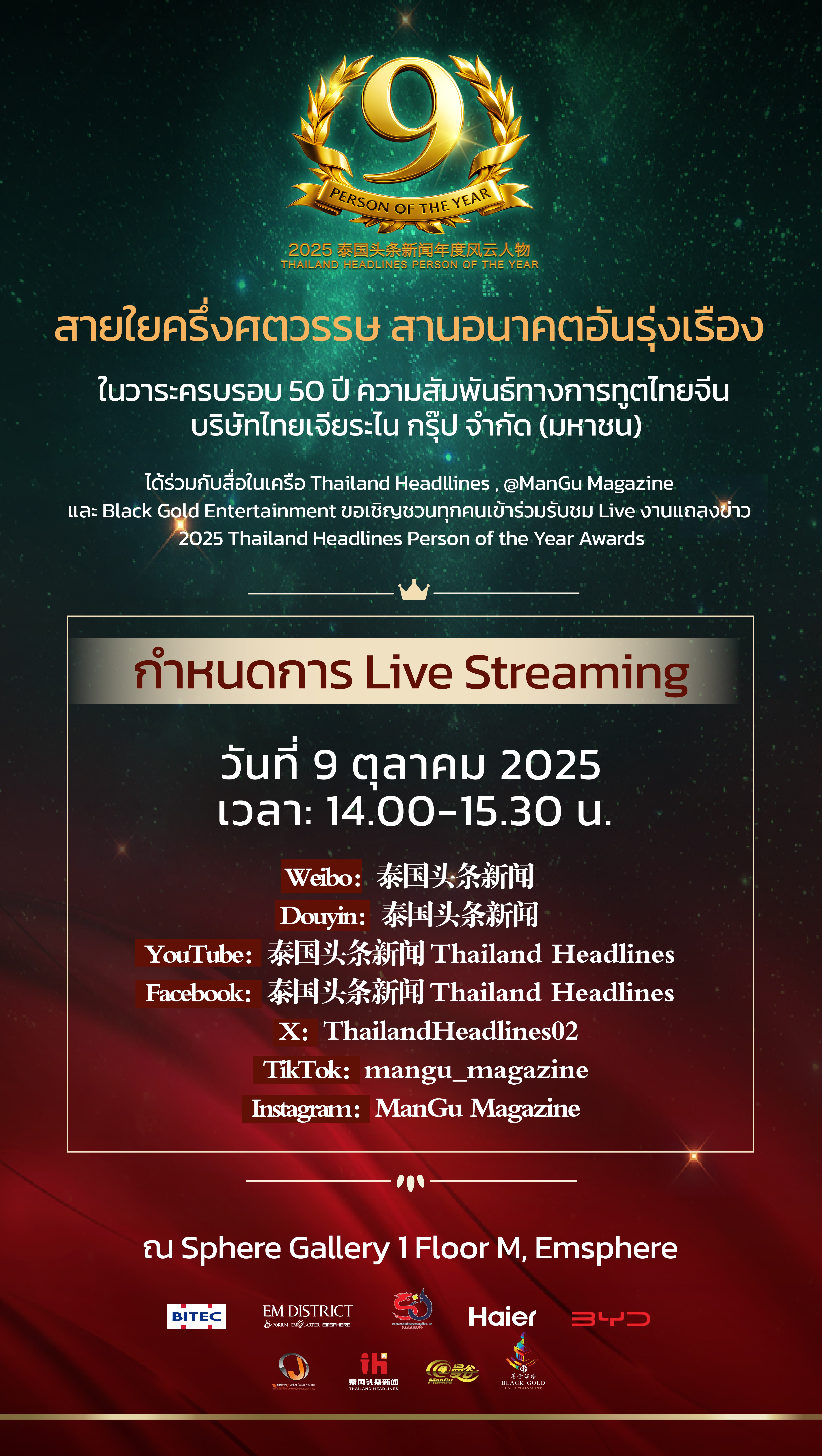 พร้อมถ่ายทอดสดพร้อมกันทางแพลตฟอร์มของ Thailand Headlines และ @ManGu Magazine
