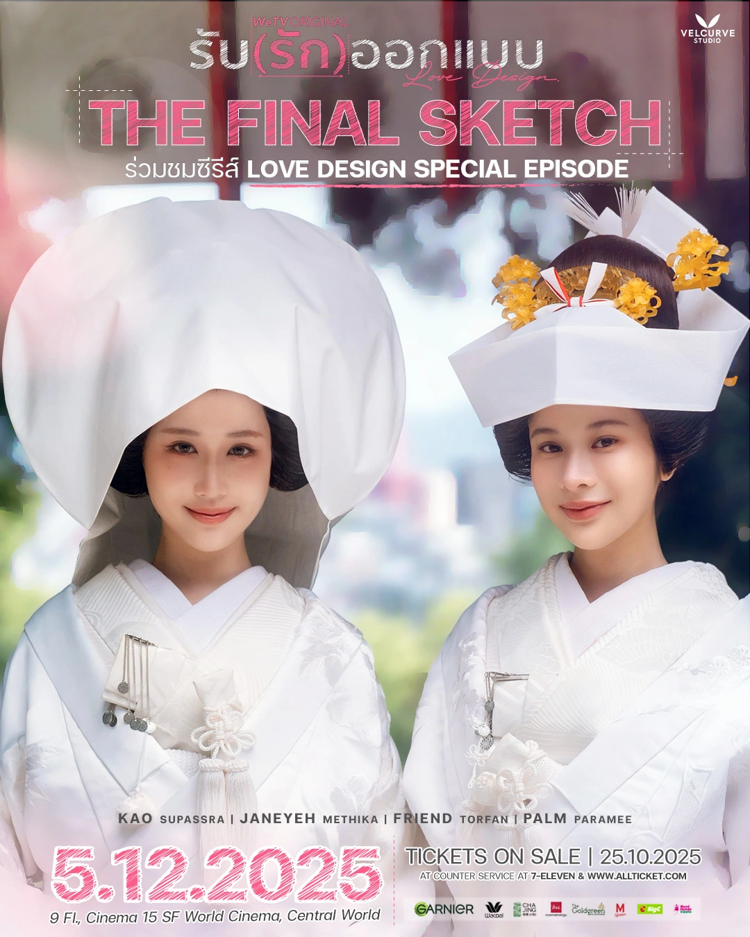 บริษัท เวลเคิร์ฟ สตูดิโอ (VelCurve Studio) ผู้ผลิตซีรีส์ Girls' Love (GL) สุดฮอตอย่าง “รับ(รัก)ออกแบบ Love Design” เตรียมส่งท้ายซีรีส์ ประกาศจัดงานสุดยิ่งใหญ่เพื่อเป็นการปิดฉากเรื่องราวความรักของสถาปนิกที่ทุกคนหลงรัก ในงานที่มีชื่อว่า “THE FINAL SKETCH” SPECIAL EPISODE OF LOVE DESIGN SERIES ชวนแฟนคลับทุกคนร่วมชม "ตอนพิเศษ" (Special Episode) ส่งท้ายซีรีส์ แฟน ๆร่วมเป็นสักขีพยานความรักของ "ออกแบบ" และ "ริน" ที่เดินทางมาถึงจุดหมาย พร้อมฟินกันต่อแบบไม่ขาดตอนกับคู่ "วี" และ "เตอร์ติส" ที่จะทำให้หัวใจคุณเต้นไม่เป็นจังหวะ!
