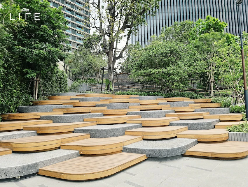 最引人注目的莫过于项目核心的 Roof Park。这座面积达 7 莱(约 11,200 平方米) 的空中花园,将成为泰国最大的空中绿地。漫步其中,仿佛置身空中森林,眼前是曼谷繁华的都市景致,脚下却是一片葱茏绿意。无论是晨间慢跑、傍晚散步,还是与朋友在草坪上闲谈,这里都将成为都市人心灵的栖息地。