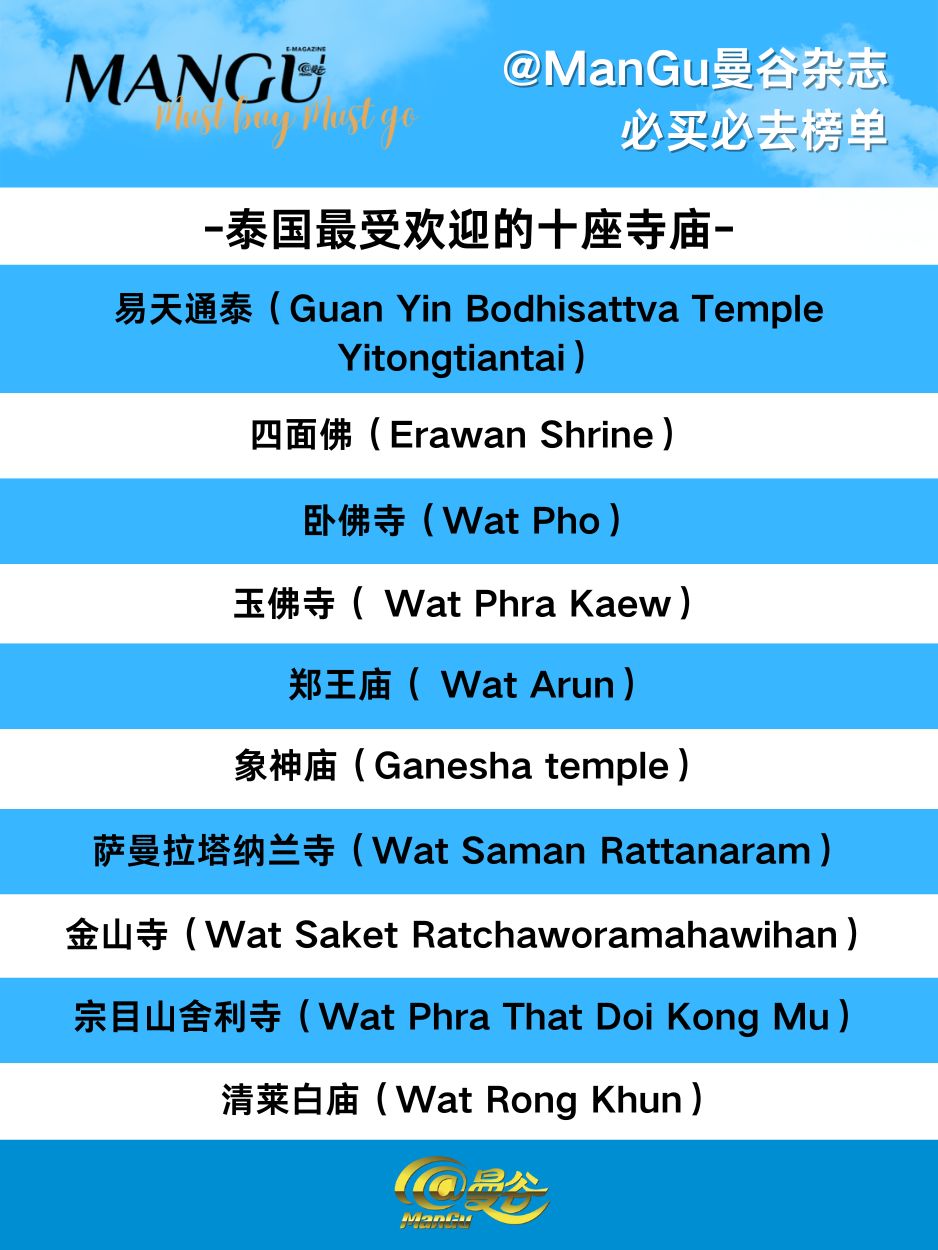 为了让大家更便捷地探索泰国的信仰与建筑之美,《@ManGu曼谷》杂志本期特别推出了这份“泰国最受欢迎十大寺庙”榜单。从曼谷的繁华街区到北部宁静群山,从宏伟的玉佛寺到独特的白庙艺术空间,这份榜单精选了最具灵性与艺术魅力的寺庙,带你用心体验泰国信仰文化的精髓。无论你是第一次踏上泰国的土地,还是已经多次造访,这份榜单都会带给你视觉震撼与内心平静,让每一次膜拜与驻足都成为旅行中难忘的心灵瞬间。