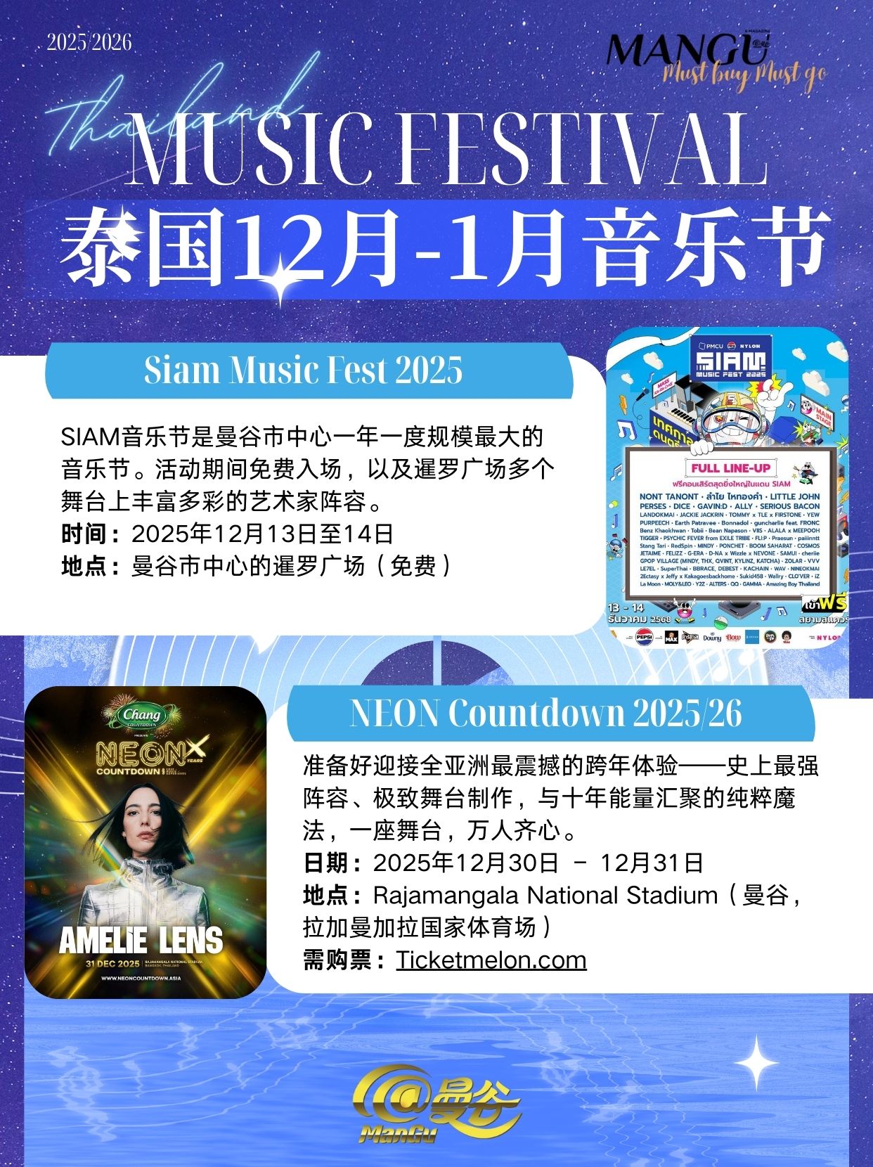 进入年末到新年之交,泰国的音乐现场正在迎来一年中最密集、也最具能量的时段!千万不要错过泰国一年中最好玩的时刻!