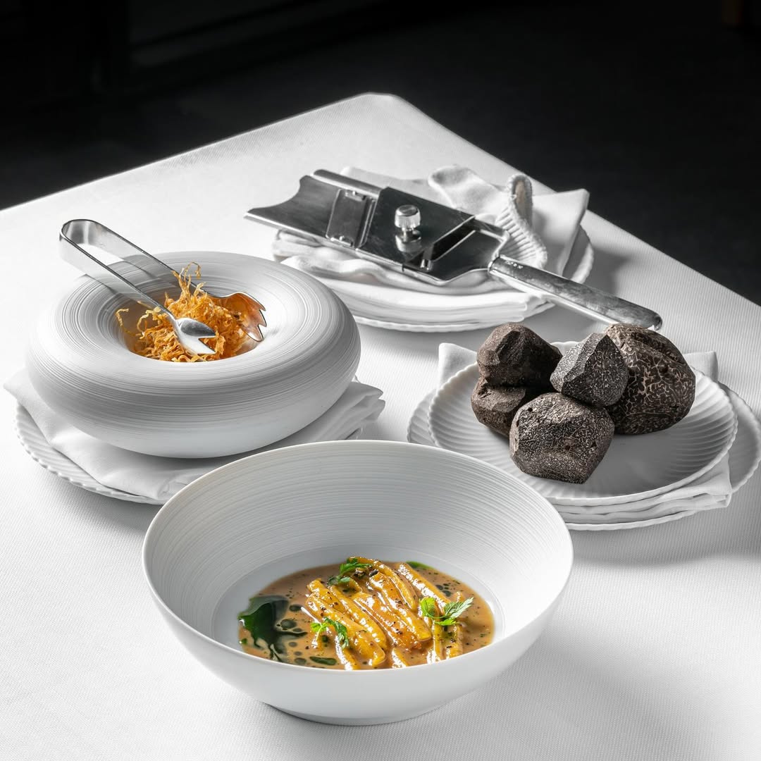 餐厅介绍:Mezzaluna是曼谷最具标志性的高级餐厅之一,自米其林指南进入泰国以来,它便连续多年保持二星殊荣,成为城市fine dining的经典代表。主厨Ryuki Kawasaki出身日式料理体系,却以法式料理为核心框架,将日本审美与经典法式技法结合,运用顶级食材创作出层次丰富、平衡精准的品鉴菜单。每季更换的七道菜品不仅呈现出时令变化与风味创新,也体现出料理与情感共鸣的深度。