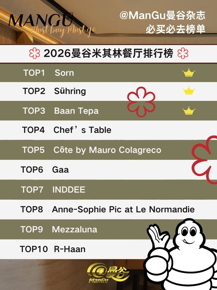 对于食客而言,米其林的价值正在于降低选择成本。它让人在有限的时间与预算内,更高效地抵达一座城市最值得体验的餐桌。但当2026年曼谷的星级餐厅数量不断增加、风格愈发多元,仅仅知道“谁是几星”,已不足以帮助真正想吃好、吃懂的人做出判断。基于长期观察、实际体验与读者的真实使用场景,《@ManGu曼谷》从当年所有曼谷米其林二星与三星餐厅中,精选出最具代表性、也最值得专程前往的10家,整理成这份“2026曼谷米其林餐厅排行榜”。它不是星级的简单堆叠,而是一份同时兼顾文化价值、料理完成度与整体体验感的实用参考,希望能为你的下一次曼谷美食之旅,提供清晰而可靠的指引。