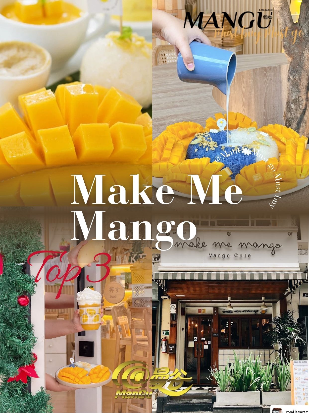 如果说芒果糯米饭是泰国甜点中的国民经典,那么Make Me Mango就是将芒果这一食材玩到极致的甜品专门馆。它不是简单的芒果糯米饭摊,而是一家以芒果为核心、融合创意与潮流的甜品品牌,在曼谷甜品地图上占据年轻人和游客的高声量位置。