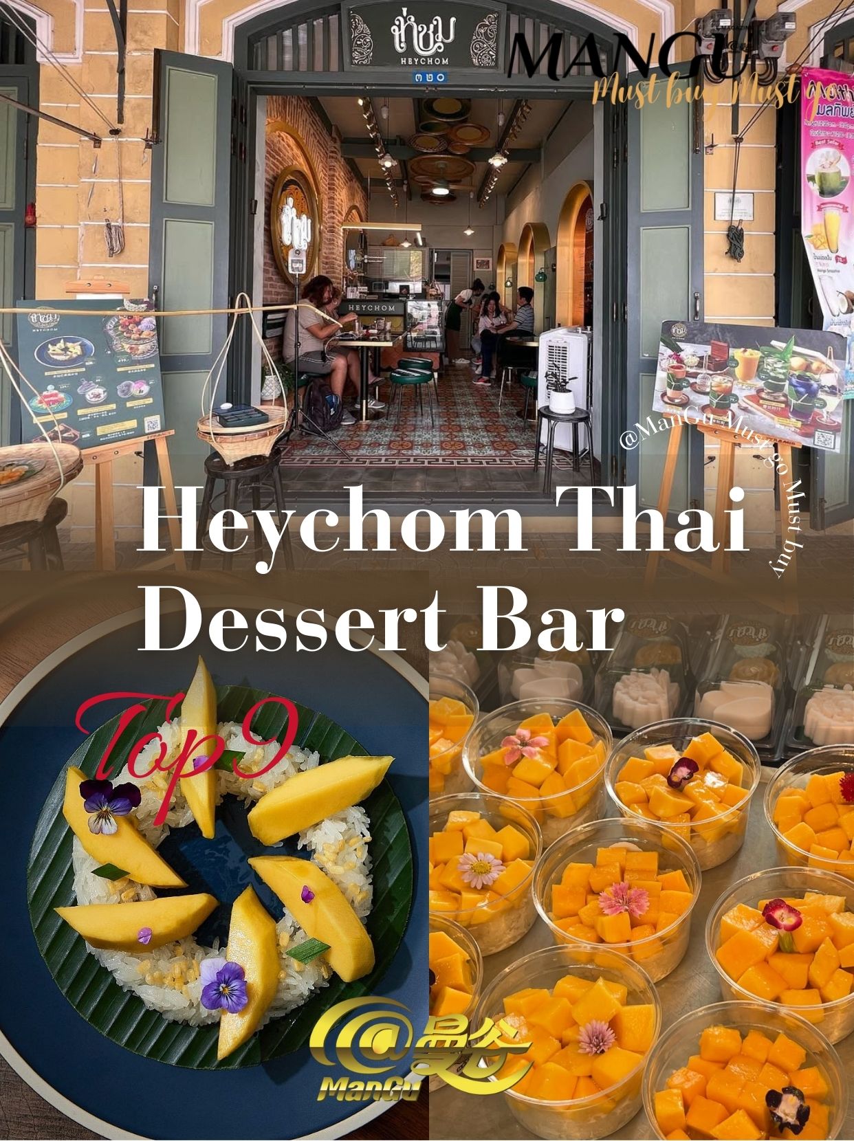 Heychom Thai Dessert Bar是曼谷老城区(靠近Wat Pho & Tha Tian区的一家泰式甜点咖啡吧,凭借精致甜品、轻松氛围与位置优势迅速在游客圈和本地打卡圈走红。这里不像传统的芒果糯米饭档口,而是把泰国传统甜点与现代咖啡馆体验结合起来的“甜点休闲站”,适合逛完大皇宫、卧佛寺等热门景点后坐下来休息、吃甜点和喝饮料。