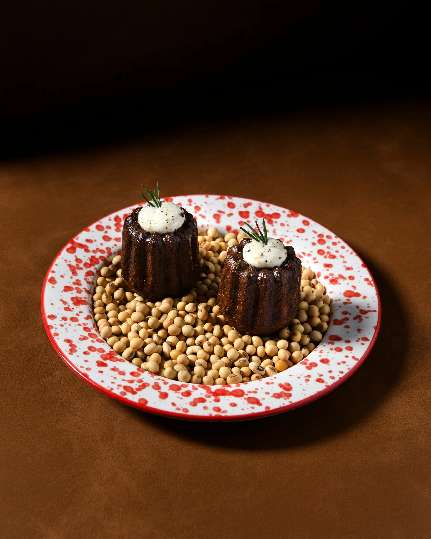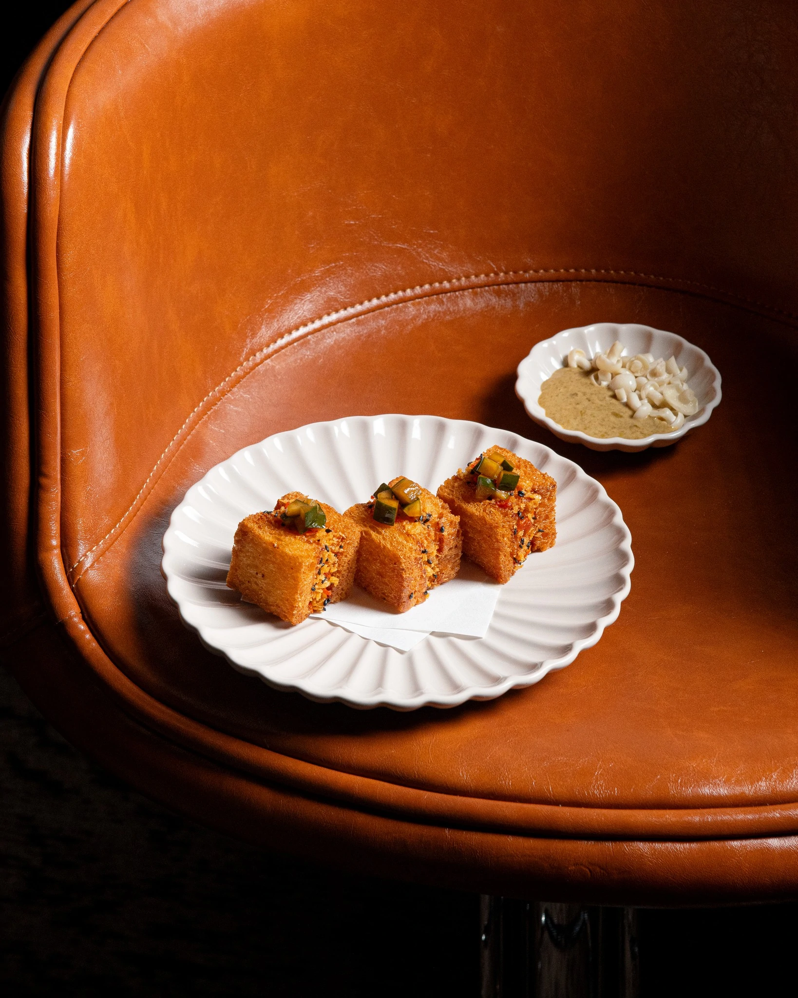 小食菜单同样充满实验精神:以经典娘惹点心Kueh Pie Tee为灵感的Hamachi Crudo Tart、配以发酵榴莲参巴的脆猪耳、甚至还有一款咸口可露丽——骨髓可露丽(Bone Marrow Canele)。 若想吃得扎实一些,来自泰国北部、采用泰日杂交和牛的Jasmine Wagyu(THB 750)绝对是值得一试的主角级选择。
