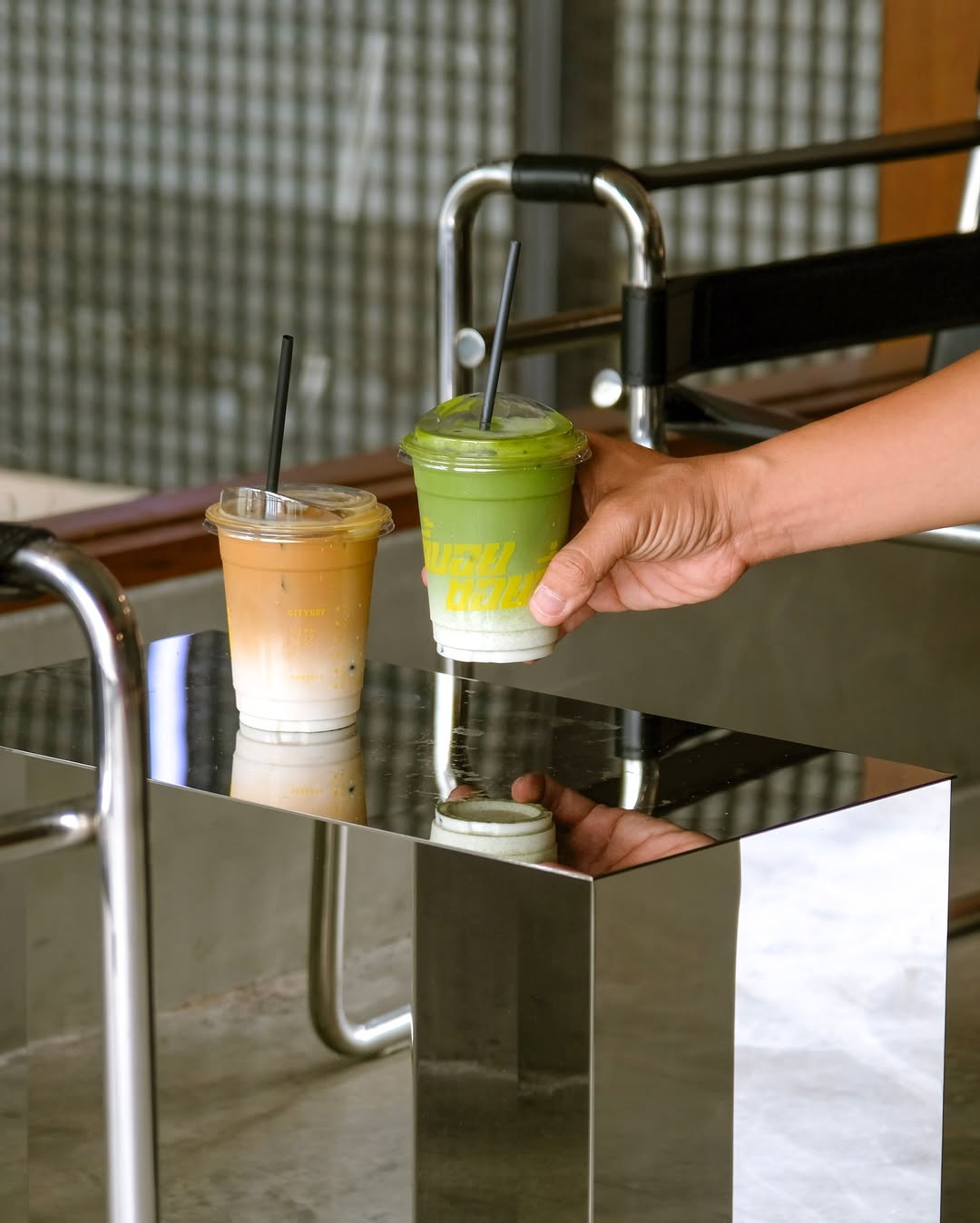 值得一提的是 City Boy Coffee Stand 本身。这个在曼谷独立咖啡圈颇具口碑的品牌,在这里找到了一个与自身气质高度契合的舞台。菜单不繁复,却足够有立场:Iced Latte 提供中度与深度两种烘焙选择,前者明亮清爽,后者醇厚带劲;Matcha Latte 则为不喝咖啡的人留下了一个驻足的理由。在这里,咖啡不是配角,而是整个空间叙事的序章。