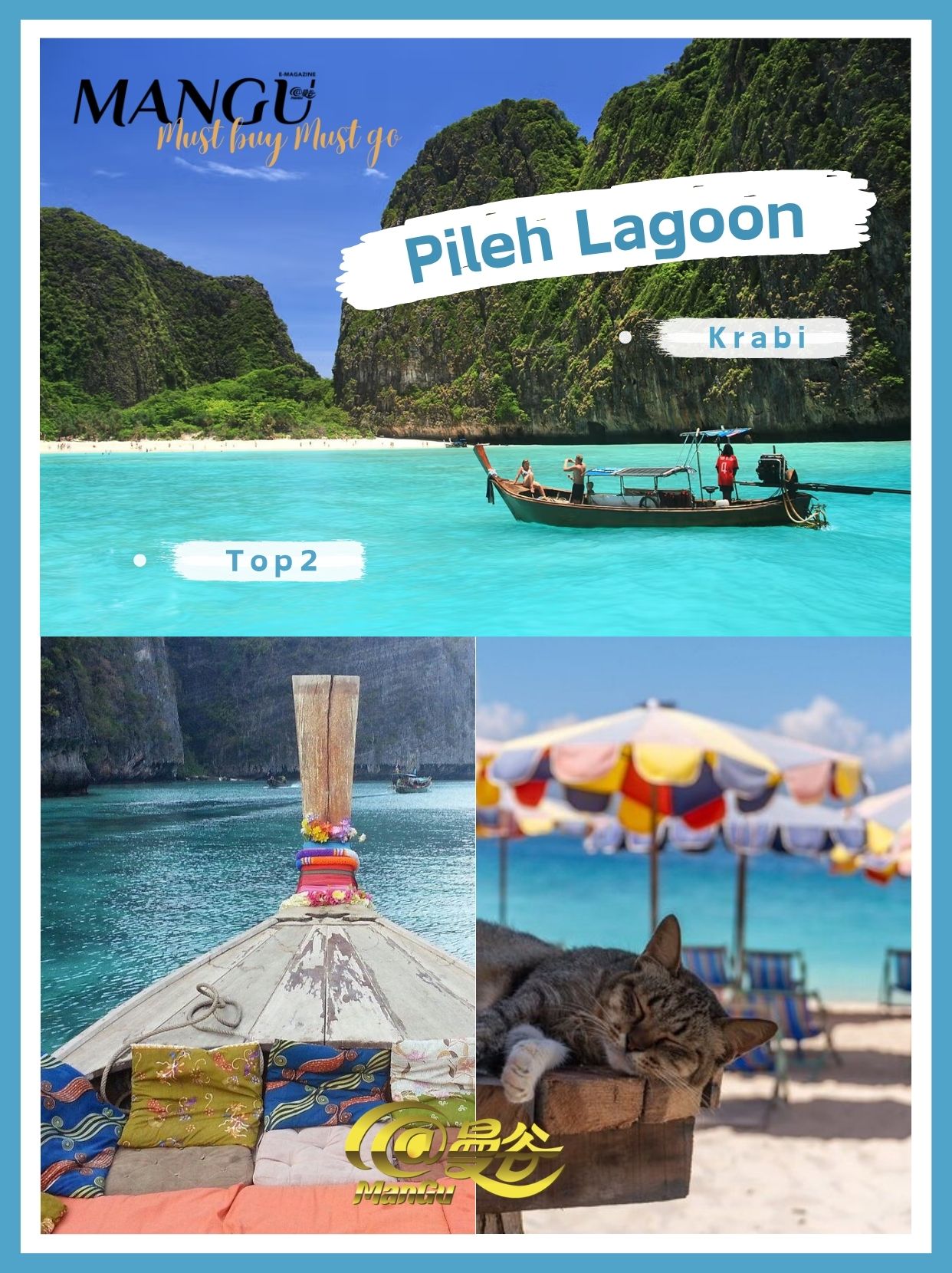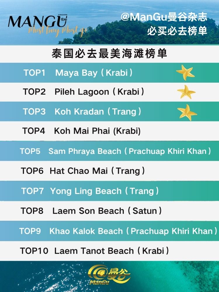 但对旅行来说,仅仅“环境好”是不够的。真正影响体验的,往往是更直观的东西:比如第一眼的景观冲击、海水的质感、整体氛围,以及你到达这个地方的难度和过程。所以这次《@Mangu曼谷》杂志这份榜单没有直接照搬“海滩环境评估”的评选结果,而是基于其标准,再结合这几个更实际的维度重新筛了一遍:
